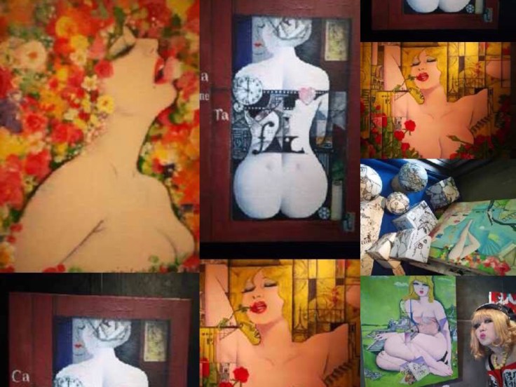マロンちゃんの得意技はカメラによる自撮りである。セルフ(自分自身)+ポートレイト(肖像)。マロンちゃんは、作品をphoto、複写、ドローイング、コラージュ、ペインティングで創作する。画面の中には必ずと言ってよいほどマロンちゃんが居る。それも艶めかしいほどエロチックな被写体である。マロンちゃんに似たセルフポートレイトを得意とする画家に森村泰昌さんがいる。彼はマネの作品「オランピア」や「笛を吹く少年」など有名な画家たちの作品にセルフポートレイトして入り込んでいく手法を使っている。森村さんはセルフポートレイトを「自画像」から「自写像」とも言い、さらに「自我像」と呼んでもいいのではないかと著書『美術の解剖学講義』の中で語っている。