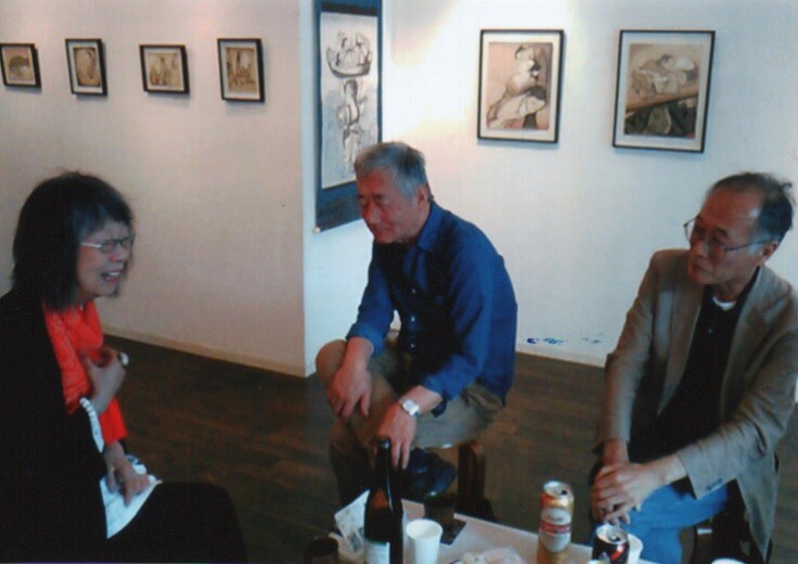 浅草の吾妻橋を渡り、金のオブジェ(愛称・金のウンコ)のビルを過ぎるとギャラリー・アビアントがある。そこで古茂田杏子さんと佐藤草太さんの二人展が開催され初日に観に出かけた。残念ながら佐藤さんは、不在だった。画家の故・西村宣造さんから彼の絵を観るように頼まれた古茂田さんは、佐藤さんと互いに作品展を通じて知り合い、今回の二人展となったと聞く。古茂田さんは江戸情緒漂う戯画であるのに対して佐藤さんは愛国を謳った昭和の雰囲気で画風は異なっている。共通しているならレトロ感覚かノスタルジーだろうか。古茂田さんは佐藤さんより遥かに年配であり画家として経歴も古い。それ故に彼女を慕う画家仲間も多い。初日とあって画家の緑川俊一さんや森蔦澄子さん、多賀新さん、表装家の岡本直子さん、从会事務局を務める郡司宏さんらが次々に訪れ賑わった。