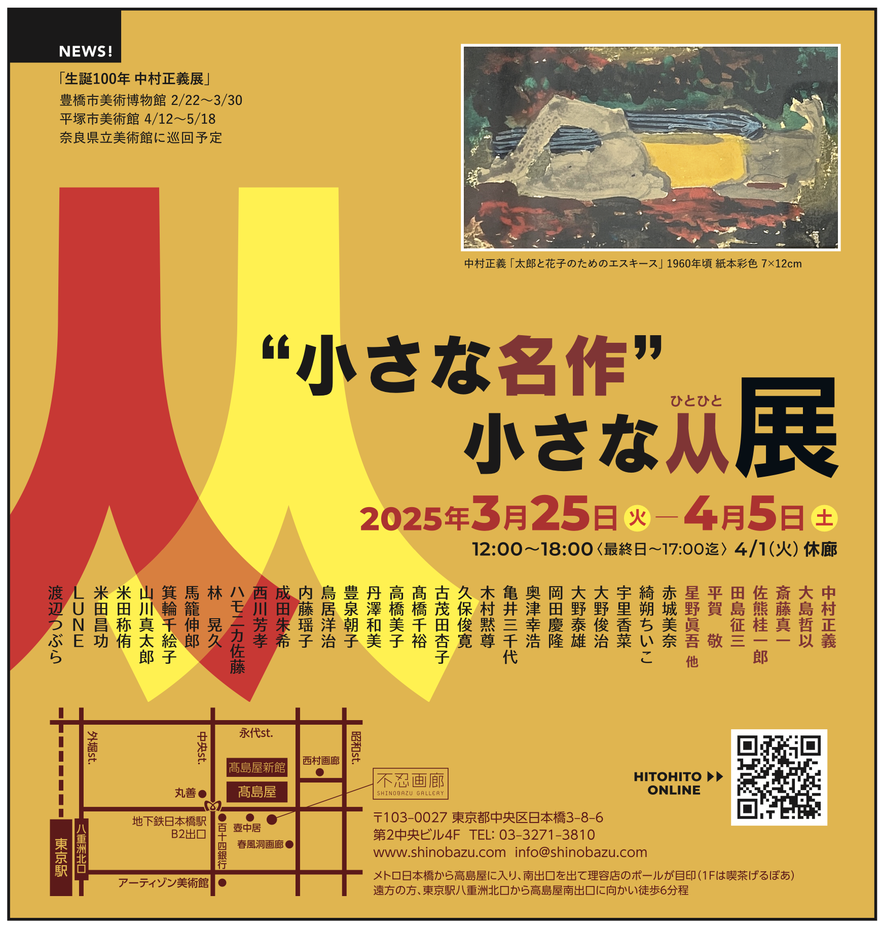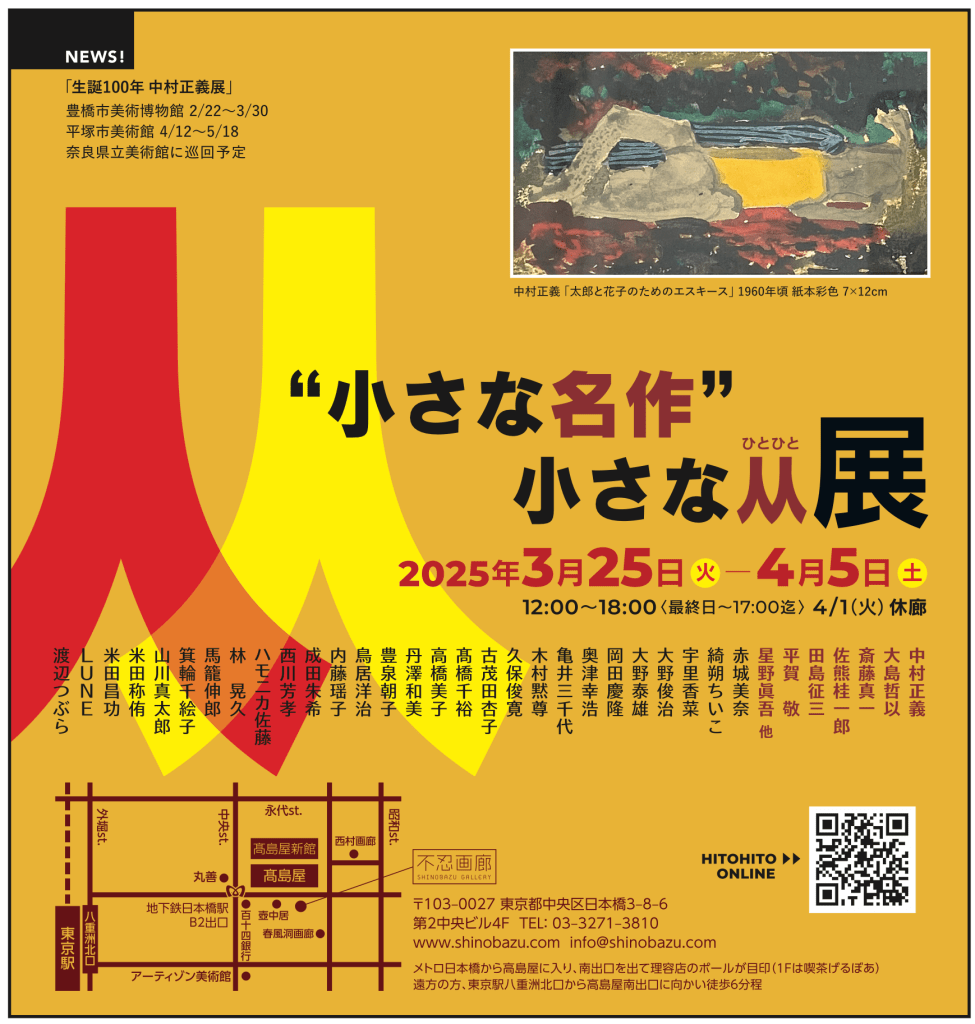 毎年恒例の小品展、不忍画廊にて開催予定です。ぜひ本展とあわせてご覧ください。